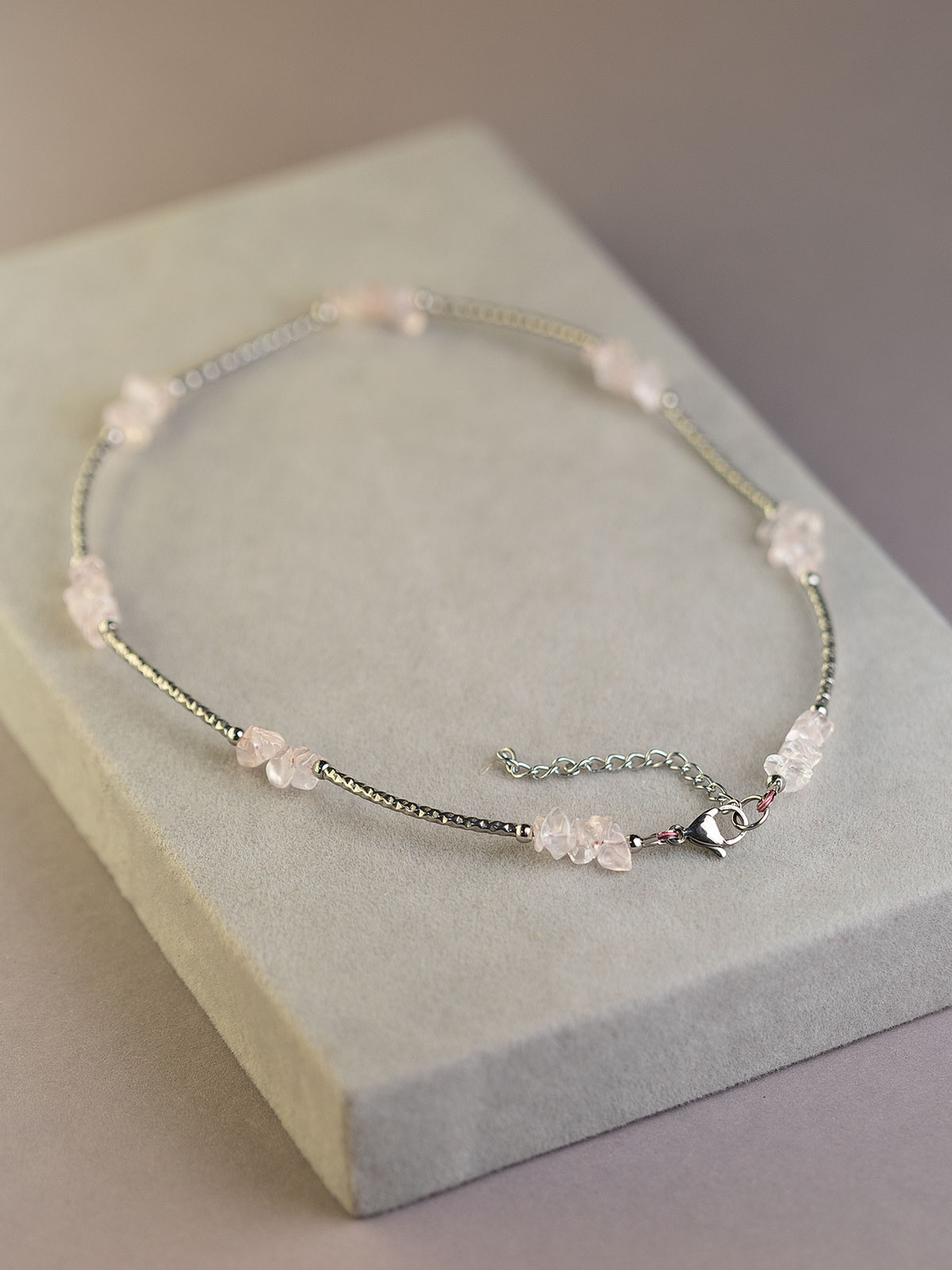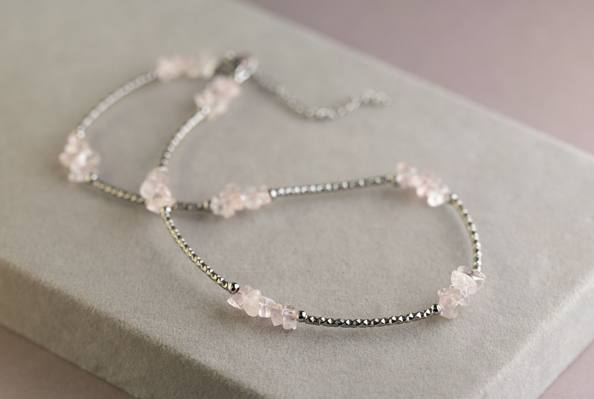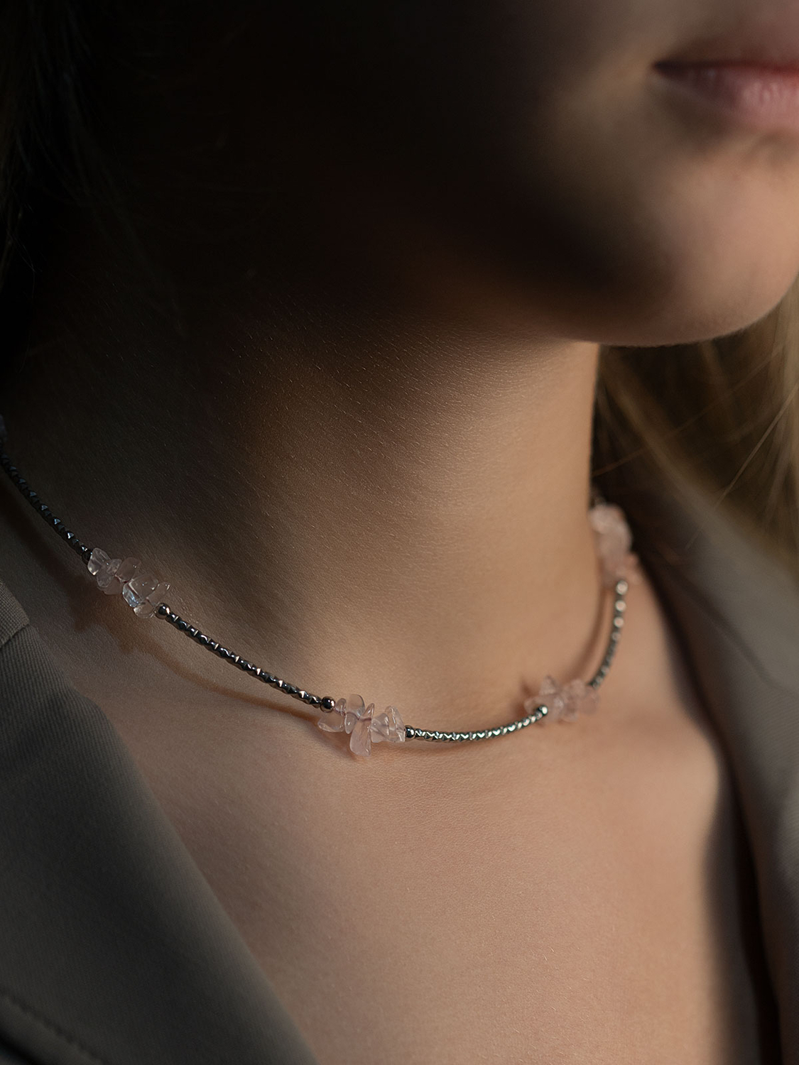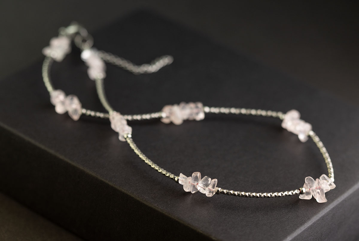Колье с природным розовым кварцем