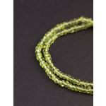 Бусы из натурального хризолита (перидота). Собраны на прочный ювелирный тросик с замком-карабином. Плоские пластинки плотно прилегают друг к другу, образуя сплошную, как будто неразделённую по бусинам, нить.