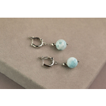 Изящное украшение, воплощающее нежность и глубину морских просторов. Натуральный ларимар небесно‑голубого оттенка придаёт серьгам особую утончённость и создаёт эффект лёгкого сияния при движении.