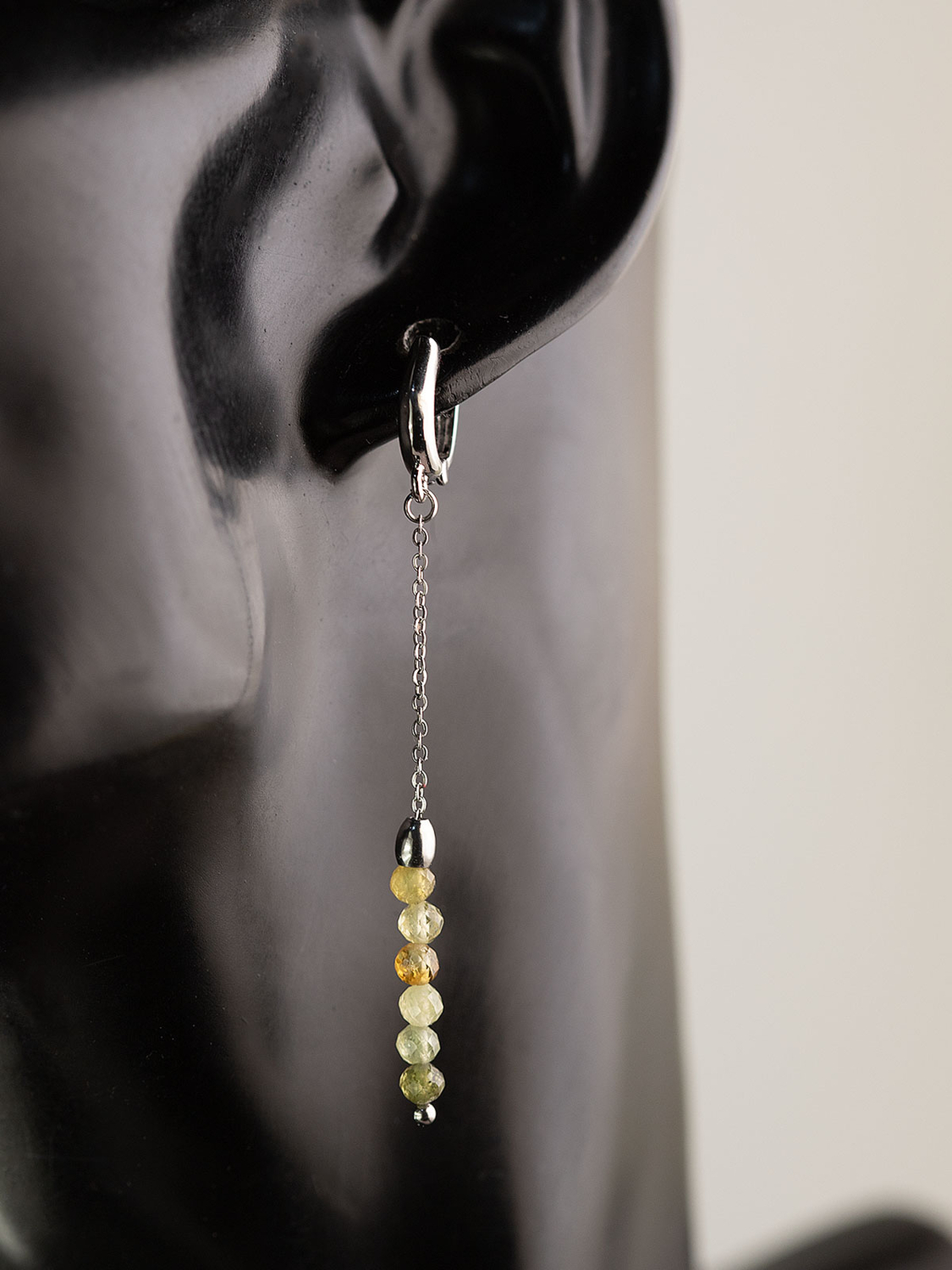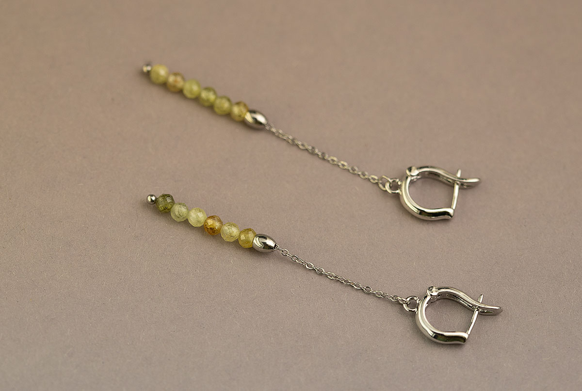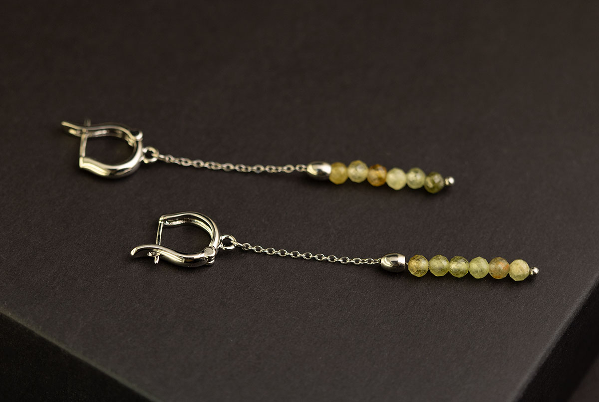 Удлинённые изящные серьги с натуральным гранатом. Бусины граната имеют огранку, что придает камню красивое мерцание. Тонкая цепочка с бусинами крепится к небольшим застежкам с английским механизмом. Аксессуар, который будет смотреться стильно и оригинально и подойдет к любому образу. Невесомость украшения, позволит носить его целый день и сделает его частым спутником ваших повседневных образов.