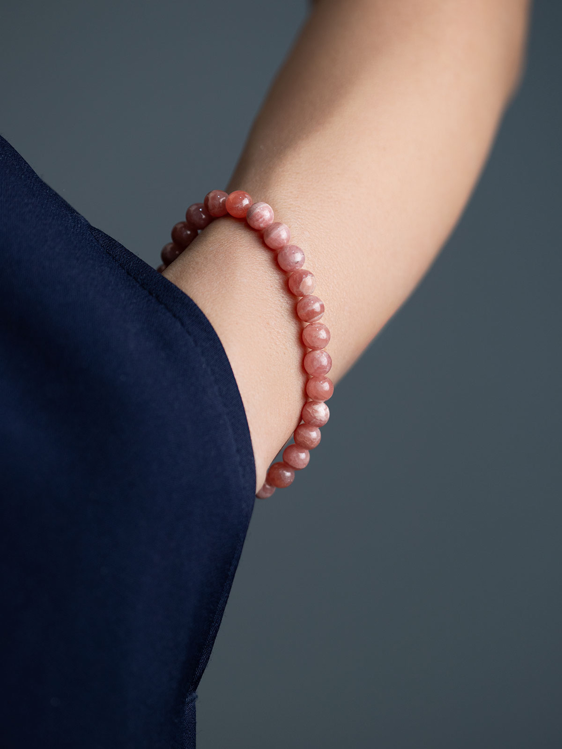 Материал: натуральный родохрозит с характерным полосчатым узором.