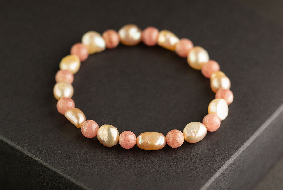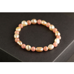 Оригинальный браслет из натурального барочного жемчуга и родохрозита. Бусины собраны на эластичную резинку без замка.