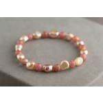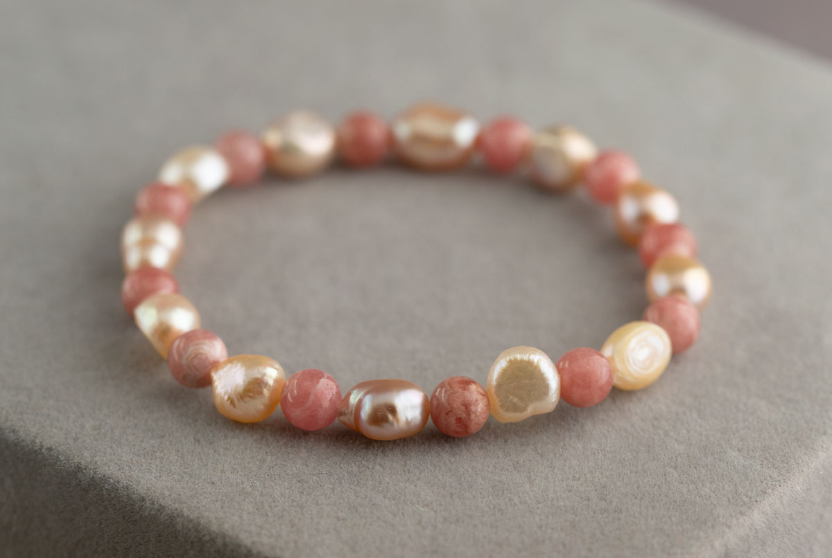 Этот изысканный браслет создан из натурального барочного жемчуга и родохрозита, где бусины чередуются через одну. Жемчуг имеет свободную, барочную форму и нежно-розовый оттенок, который варьируется от светлых до более насыщенных тонов. Бусины родохрозита выполнены в форме шара диаметром 7 мм, что добавляет украшению гармонии и завершенности.
