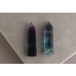 Натуральный флюорит обработанный в форме маленького кристалла.