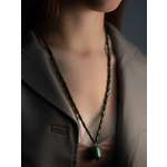Кулон из нефрита на нитке из бусин тонированного кварца, собранного через чёрный бисер.