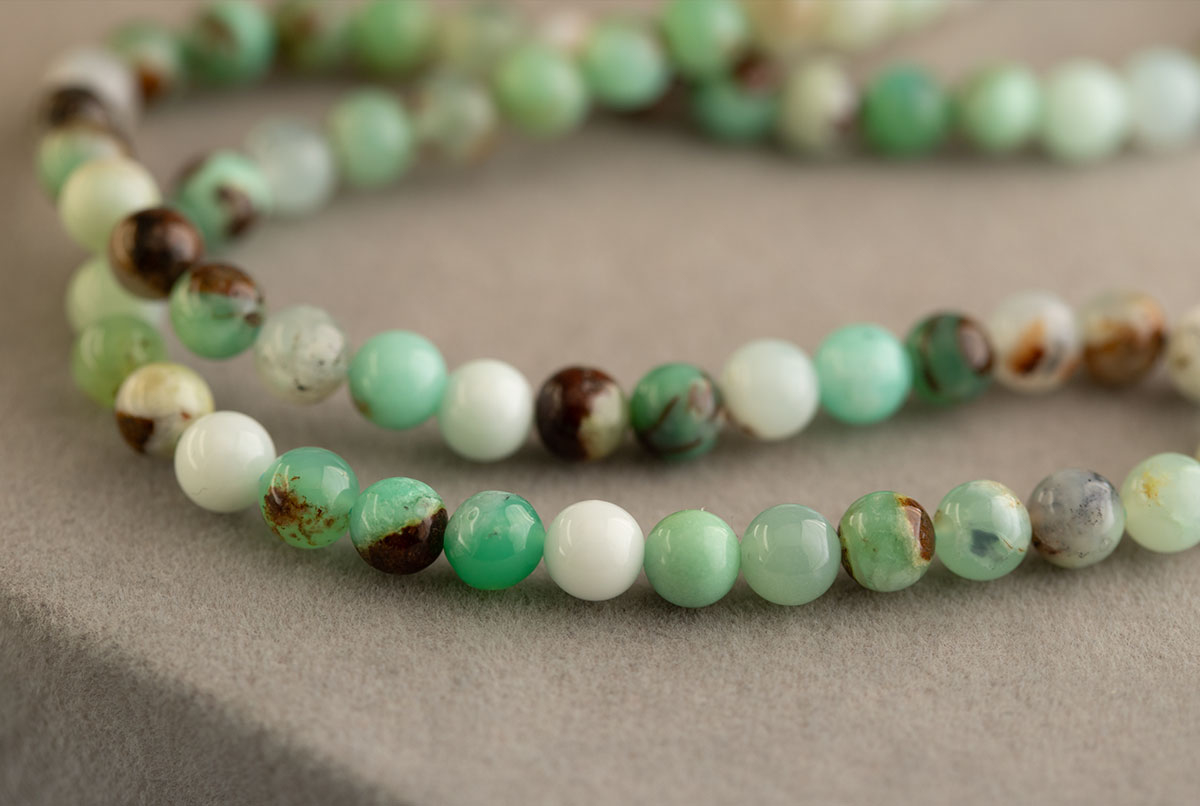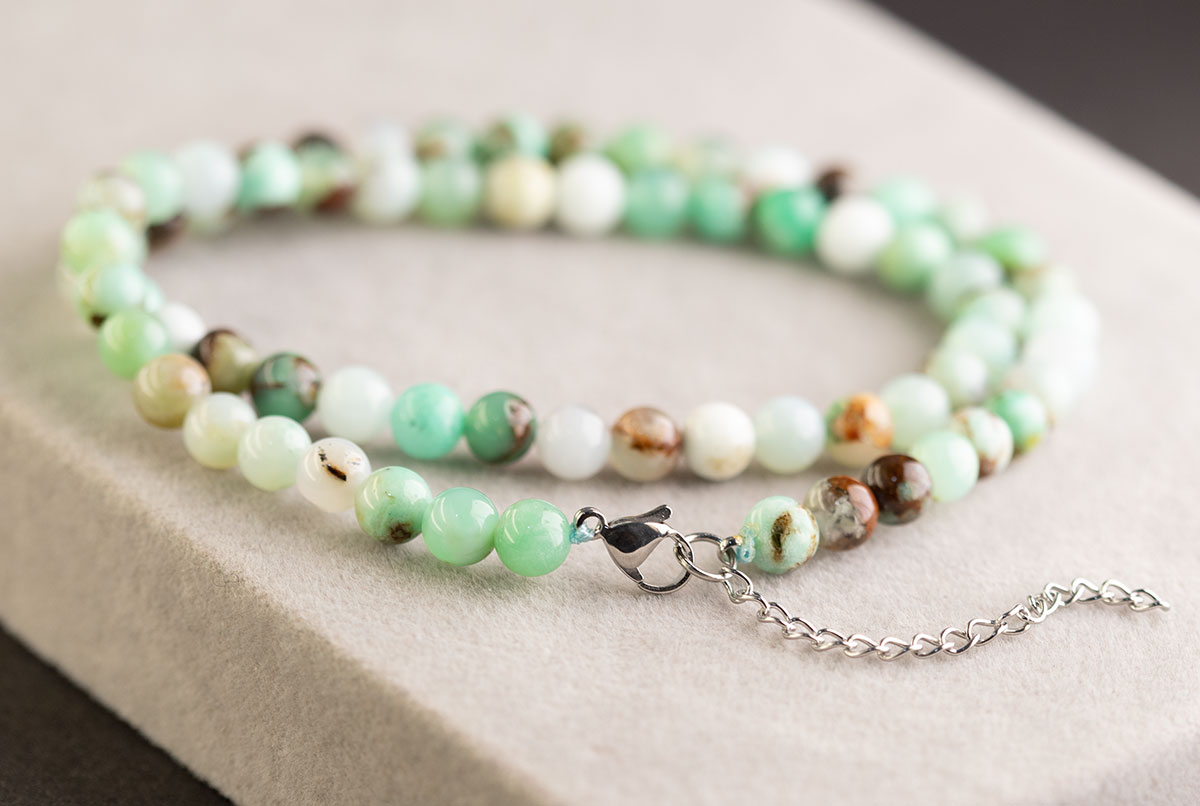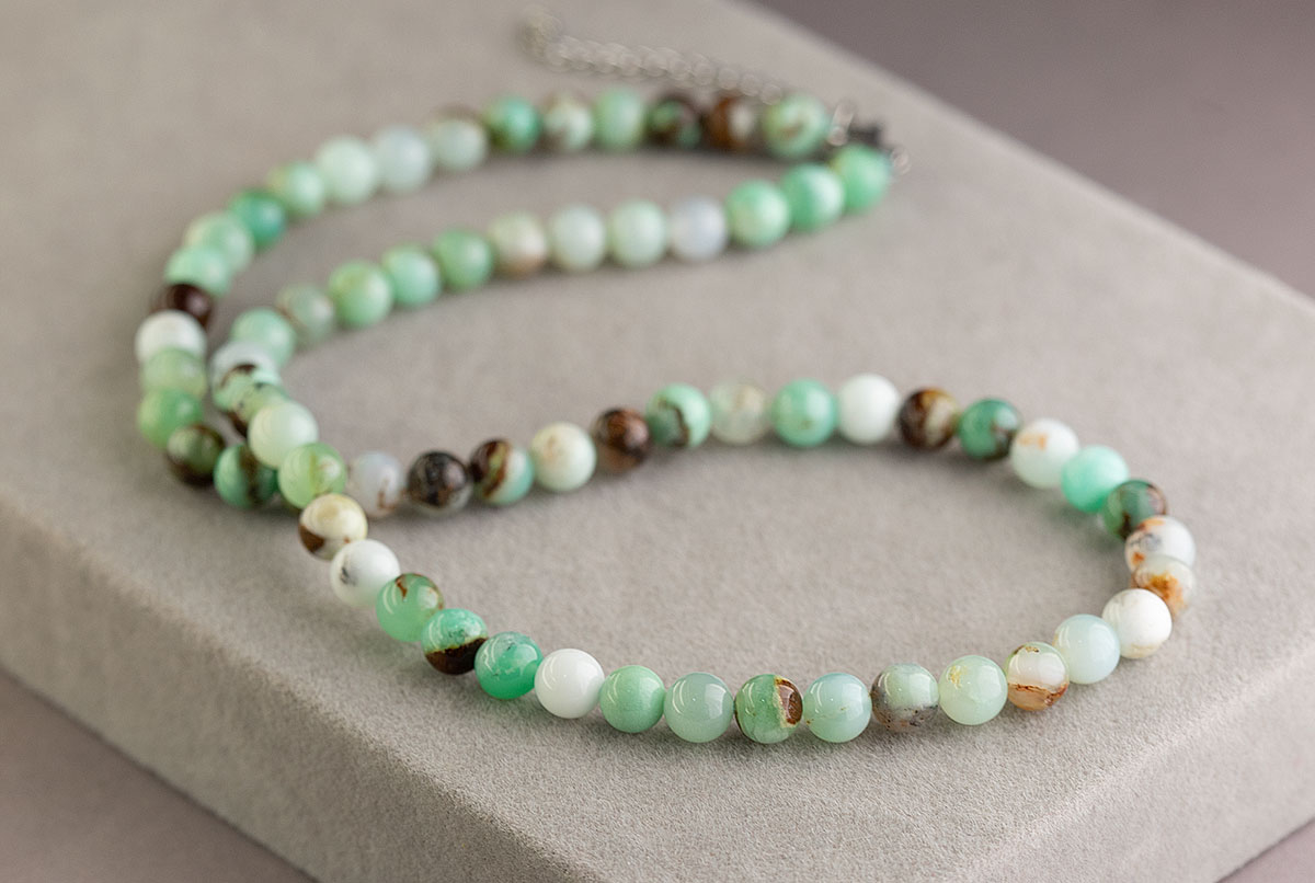 Эти бусы станут прекрасным дополнением к вашему образу, подчеркнув вашу индивидуальность и вкус. Они подойдут как для повседневного ношения, так и для особых случаев. Хризопраз также считается камнем гармонии и благополучия, что делает это украшение не только красивым, но и символичным.