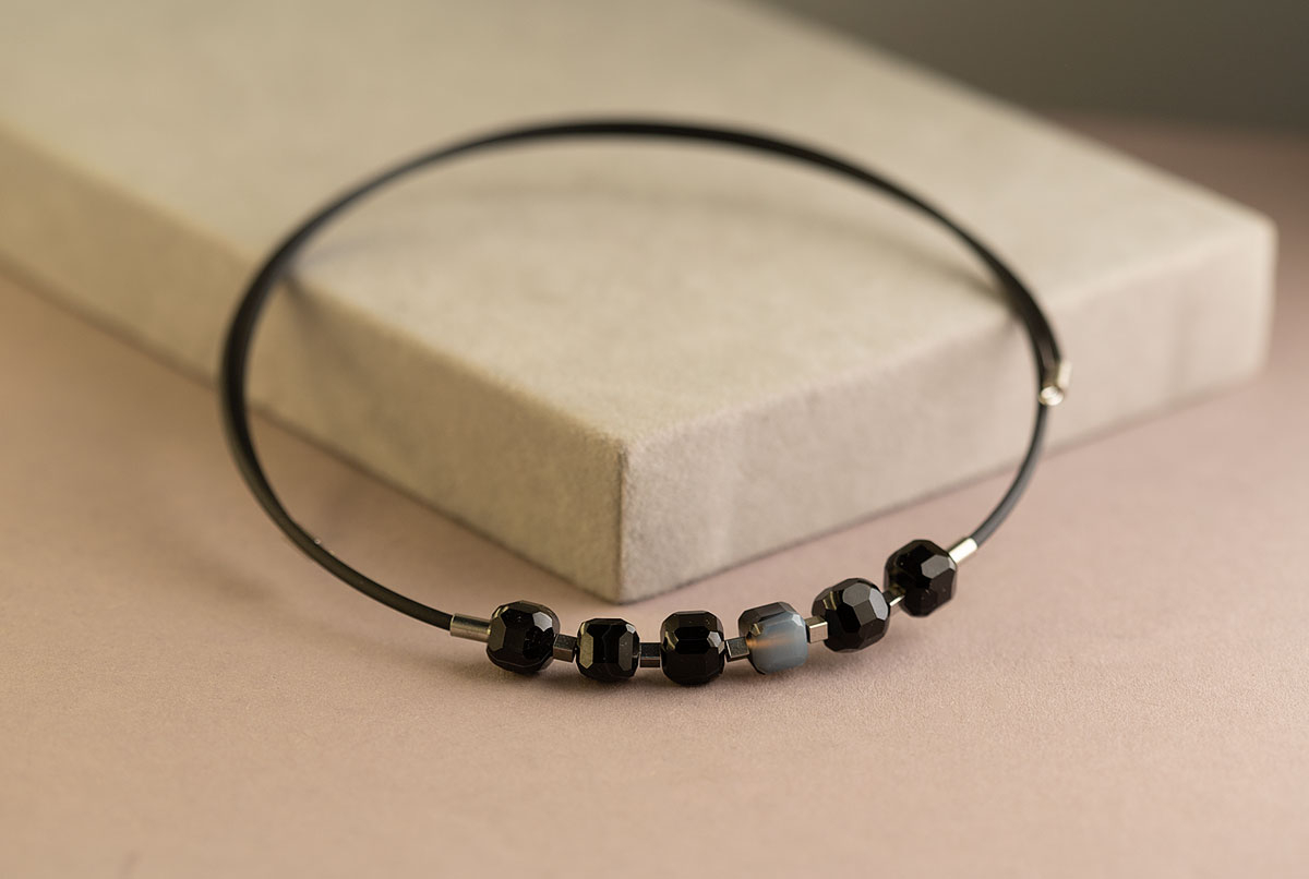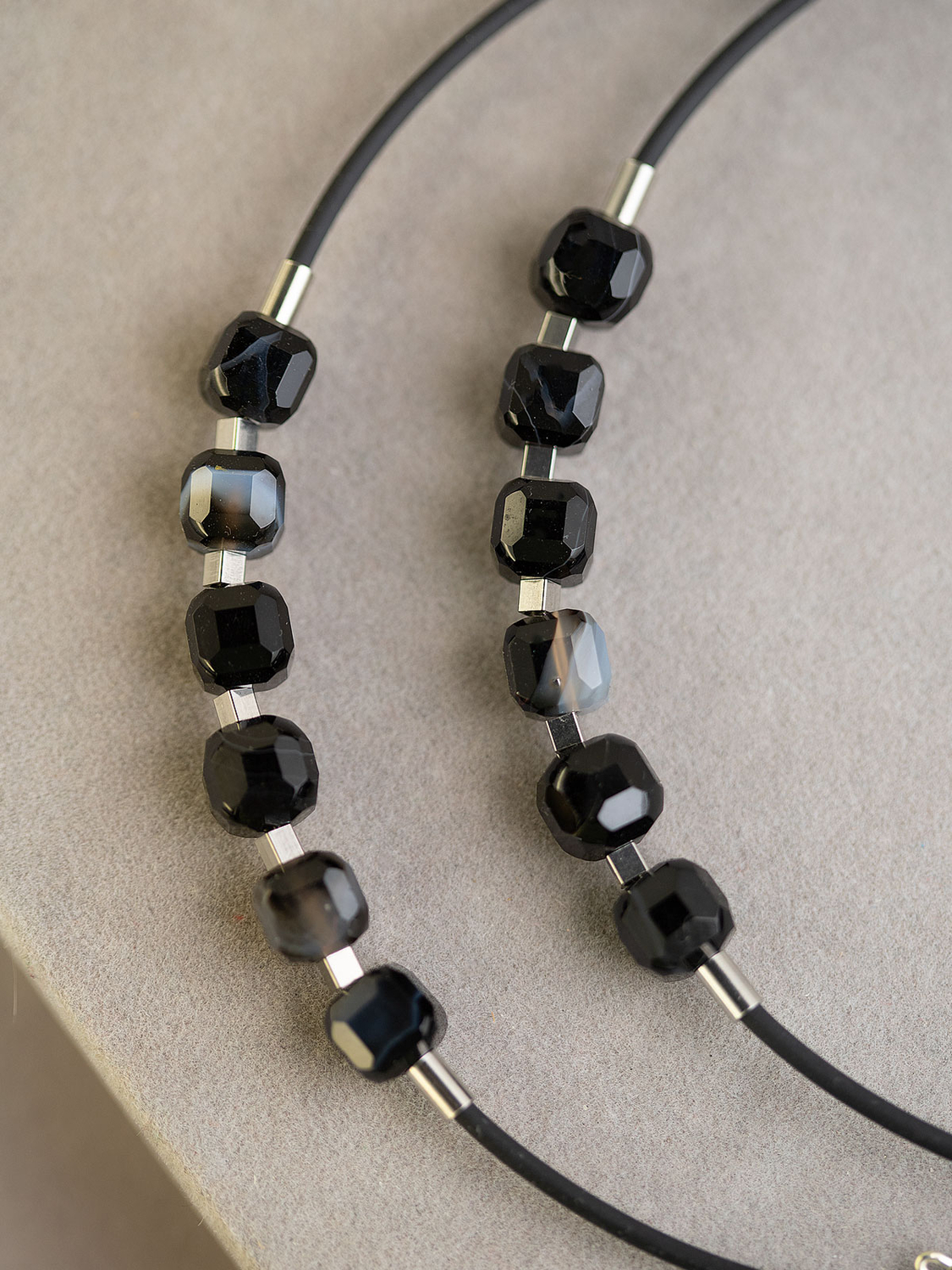 - Материал: натуральный чёрный агат из Бразилии — камень с глубокой, насыщенной окраской и характерной природной текстурой.