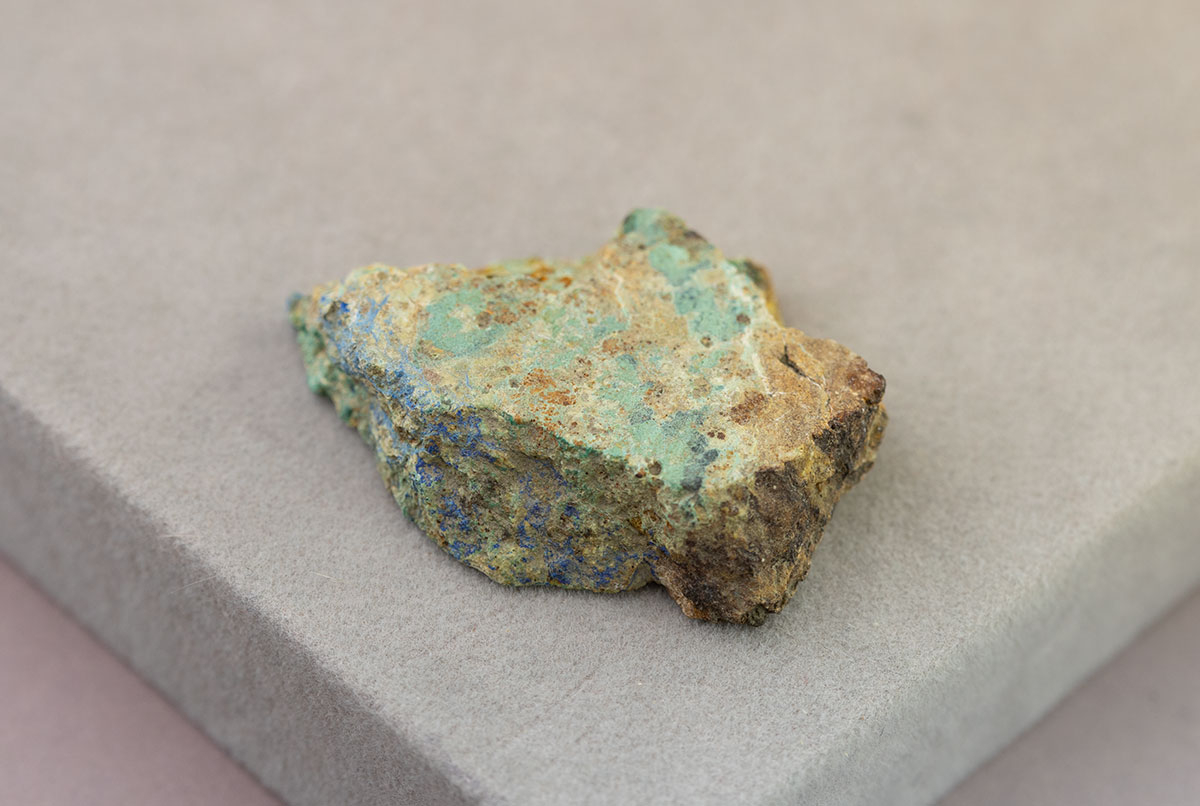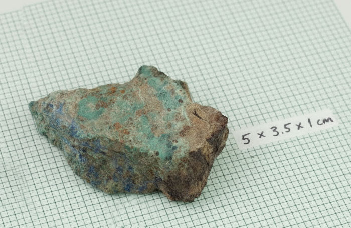 Небольшой образец азурмалахита в виде среза толщиной 1 см.